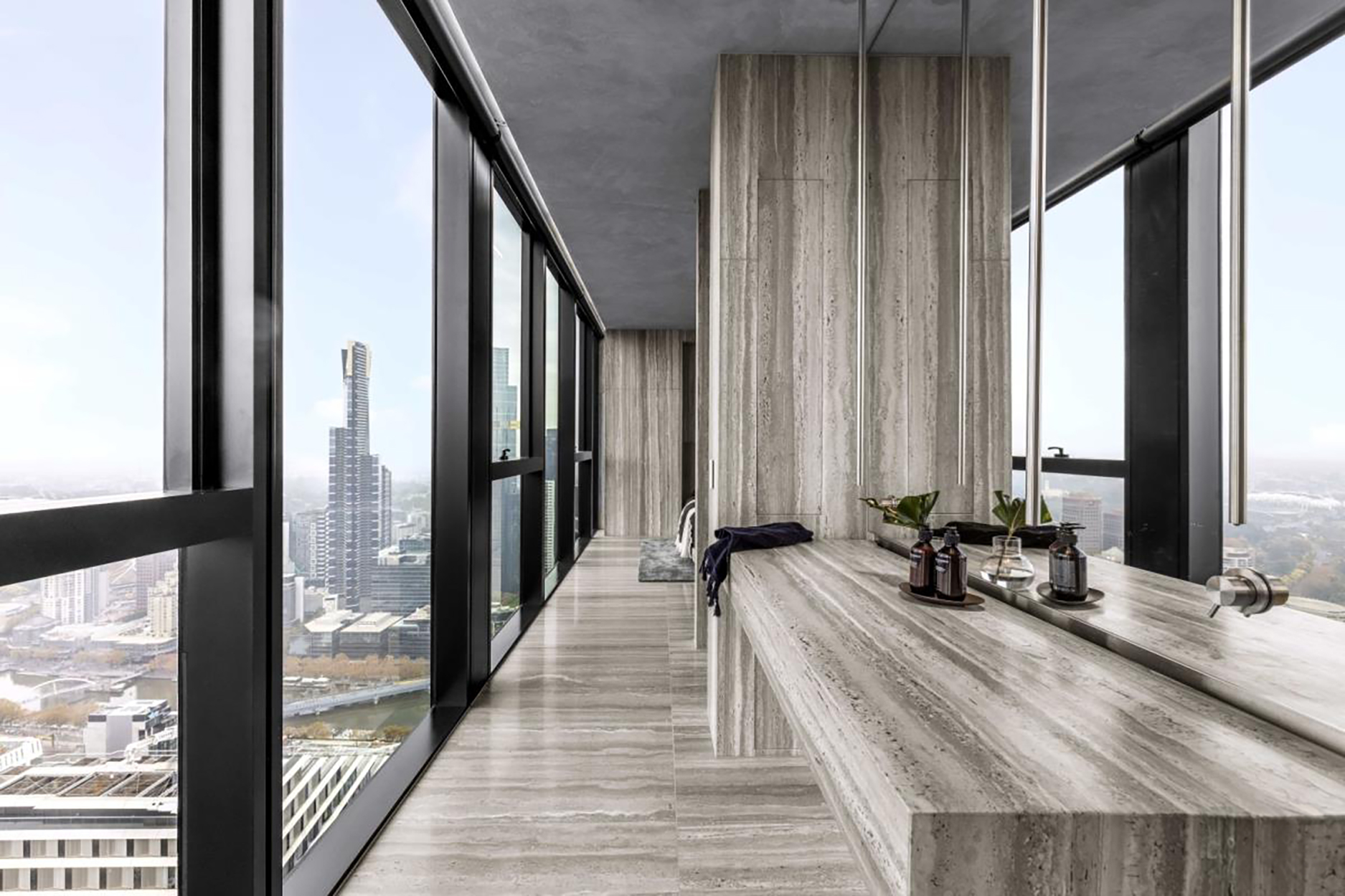 Beautiful on vanities, walls and floors with proper sealing and ventilation. Be aware that cosmetics, skincare and toothpaste can cause etching if not wiped up. - Feature walls & fireplaces: